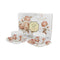 A csészéket meleg és visszafogott, pasztell színű rózsavirág motívum és postai bélyeg díszíti, amely klasszikusságot és eleganciát ad a kollekciónak.