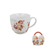 Gyönyörű, színpompás porcelán virágos bögre rózsás, papír dísztasakkal.