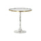 A Siena kisasztal elegáns és kifinomult megjelenésével azonnal feldobja a nappalit vagy a hálószobát. Kerek, fehér márvány hatású lapját arany szegély díszíti, amely tökéletesen harmonizál a modern, glamour vagy art deco enteriőrökkel.