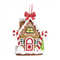 Vintage stílusú karácsonyfadísz Mézeskalács házikó piros masnis.