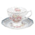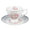 Vintage virágos porcelán csésze aljjal 220 ml kék-rózsaszín rózsás